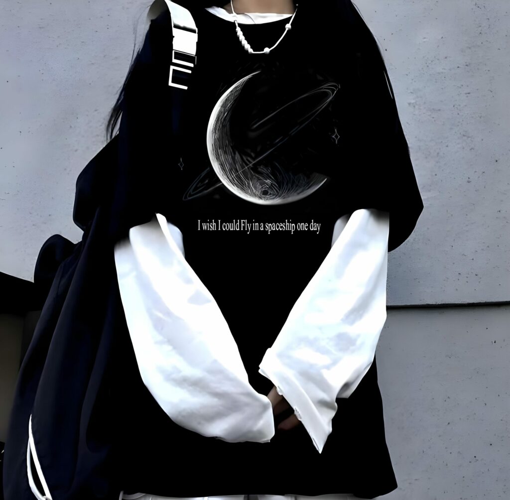 (spaceship) تیشرت مشکی آستین سفید